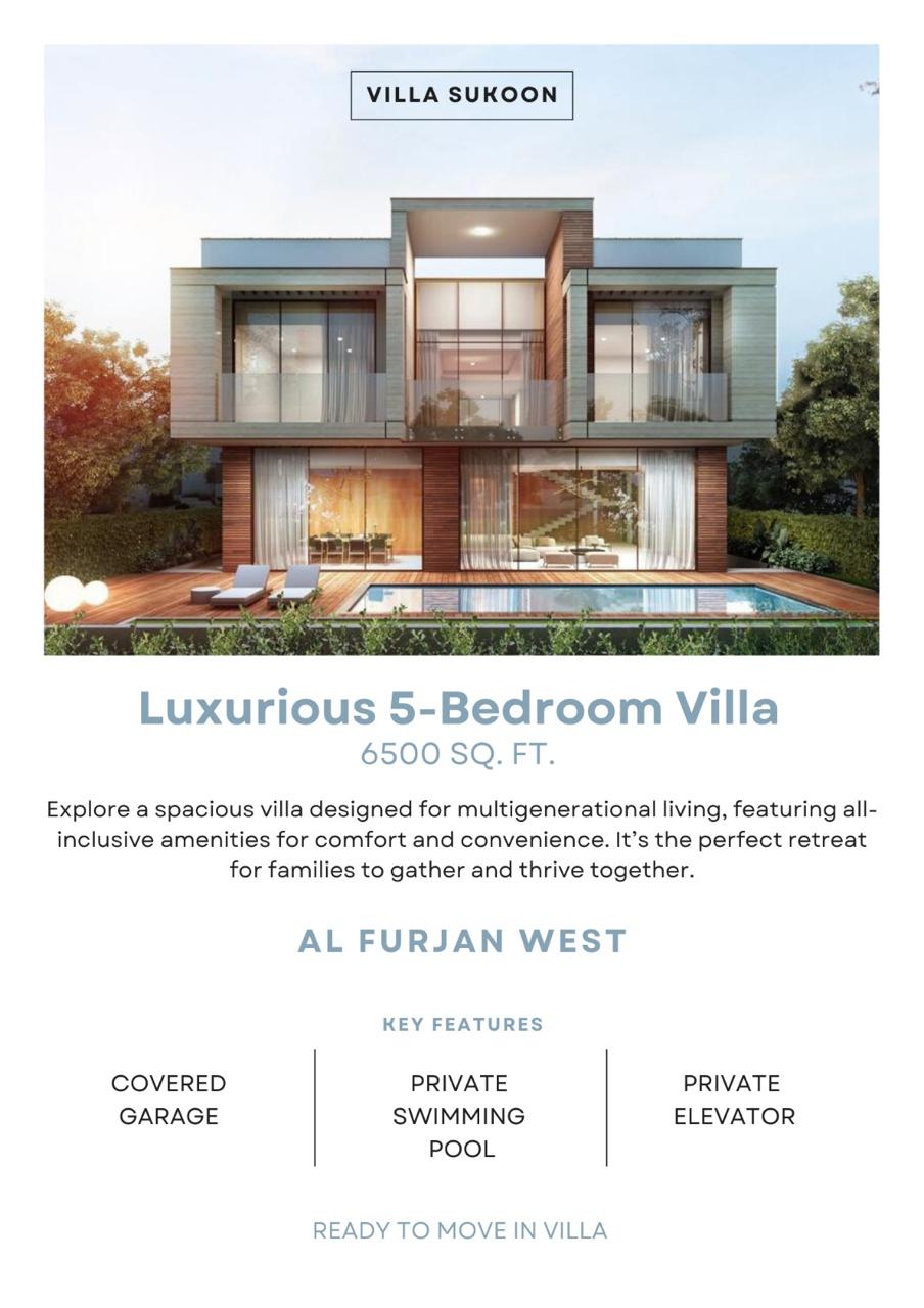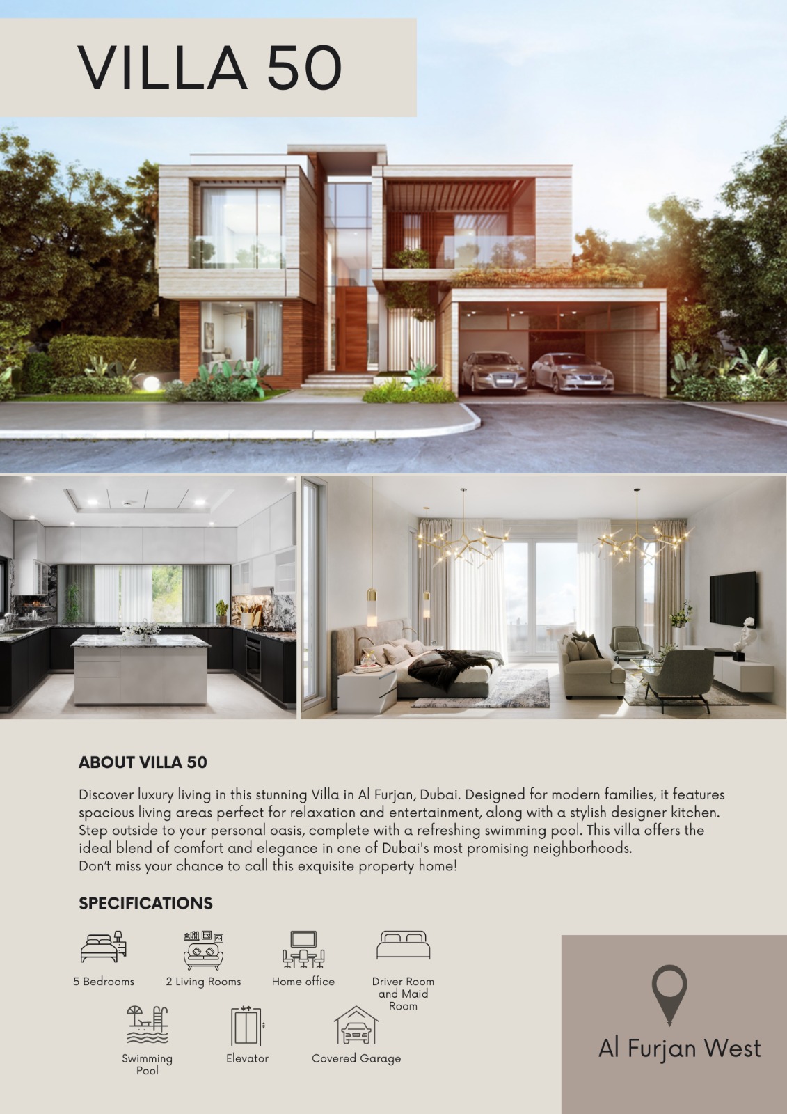 Villa 50 in Furjan offers an exceptional family home with resort-style amenities, expansive interiors, and private green surroundings. Designed for luxury, comfort, and convenience, it provides a perfect balance of indoor-outdoor living. Featuring a stunning swimming pool, a spacious layout, dedicated family zones, and unmatched convenience with a lift, this villa redefines modern living for the discerning family.